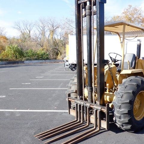 1970 ALLIS CHALMERS Model 600FL Rough Terrain Forklift, s/n 60011038FL, powered by gas engine and direct drive, 3-stage mast, 45″ block forks, canopy, 16.9-24 front and 11L-16 rear tires. In good condition with fair to good tires. (Meter Reads 1,214 Hours) (No S/N Plate – Make, Model, And S/N From Records) (Unit #E002)
