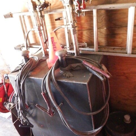 2000 FORD Model F-550XL Super Duty Van Body / Service Truck, VIN# 1FDAF56F3YEB92729, powered by Power Stroke 7.3L diesel engine and 5 speed transmission, equipped with spring suspension, Grumman Olson 16’6″ aluminum van body with roll-up rear door, Miller 200 AMP ARC welder powered by Onan gas engine, Emglo horizontal air compressor powered by Kohler gas engine, (2) product tanks with pneumatic pumps and hose reels, torch set, Snap-On tool box with contents, work bench with vise, 19,000# GVWR, dual rear wheels, and air conditioning. In good condition with good tires. (Odometer Reads 077,471 Miles)