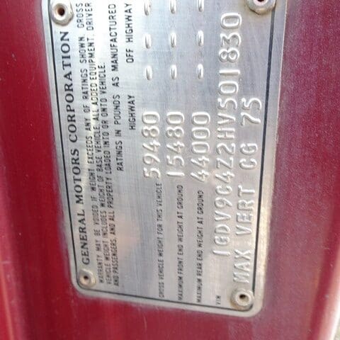 1987 GMC Model Brigadier Tandem Axle Water Truck, VIN# 1GDV9C4Z2HV501830, powered by Detroit diesel engine and automatic transmission, equipped with approximately 3,000 gallon tank, side and rear air actuated spray nozzles, in-cab controls, 59,480# GVWR, spring/walking beam suspension, air brakes, and 11R22.5 tires. In fair to good condition with good tires. (Odometer Reads 044,281 Miles) (Meter Reads 3,596 Hours) (Off Road Use Only – Tank Leaks)