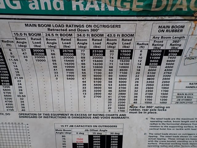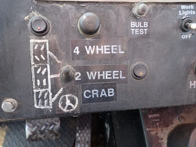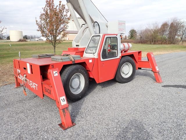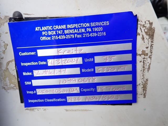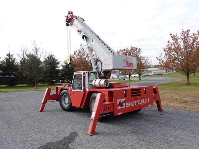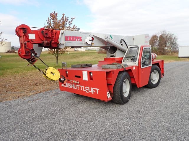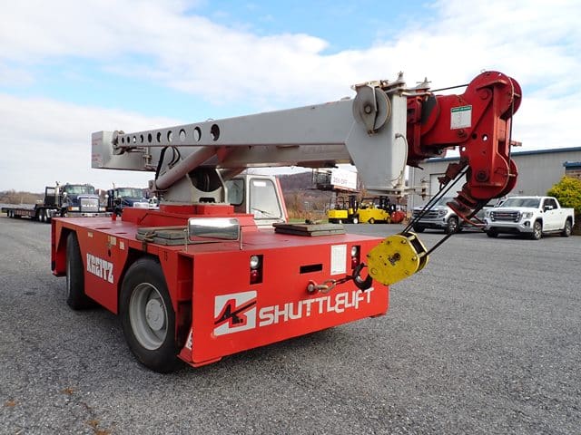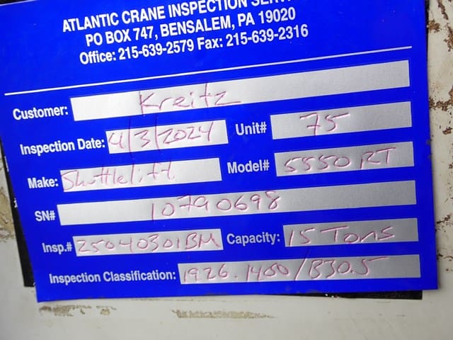 1998 SHUTTLELIFT Model 5550RT, 15 Ton Carry Deck Crane, s/n 10790698, powered by Vortec V-6 dual fuel gas engine and shuttle transmission, equipped with 15′ – 43.5′ 4-section boom, 15′ swing away jib, anti-2 block, hook block and weighted hook, enclosed cab, (4) outriggers, and 385/65R22.5 tires. In good condition with good tires. (Meter Reads 4,310 Hours) (Unit #75)