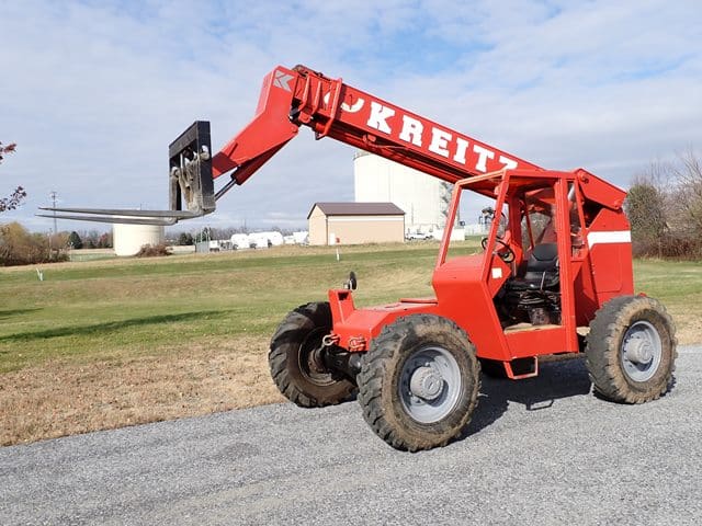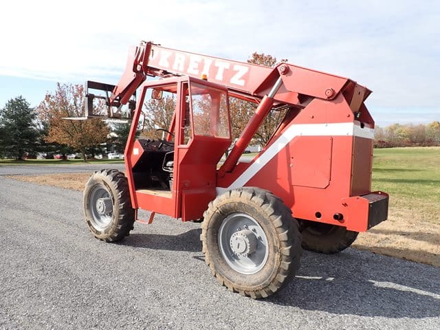 KOEHRING SKYTRAC Model 6036, 6,000 Lb Telescopic Forklift, s/n 8C0074, powered by Perkins diesel engine and shuttle transmission, equipped with 4-wheel drive, 4-wheel steer, FOPS canopy, and 13.00-24 tires. In fair to good condition with fair to good foam filled tires. (Meter Reads 7,356 Hours)