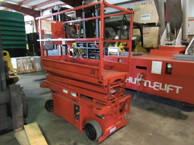 2000 JLG Model 1932RS Electric Scissors Lift, s/n 0200228451, 24 volt DC power, equipped with 19′ platform height, 500 lb platform capacity, and extendable platform. In good condition. (Meter Reads 394 Hours)