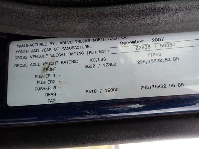 2008 VOLVO Model VNL64 Tandem Axle Truck Tractor, VIN# 4V4NC9EJ78N264564, powered by Volvo D13, 485HP diesel engine and Eaton automatic transmission, equipped with 38,000 rears, 12,350 lb front axle, locking differentials, single frame, air ride suspension, power mirrors, cruise control, air conditioning, and 295/75R22.5 tires. In good condition with fair to good tires. (Odometer Reads 625,076 Miles) (Unit #31)