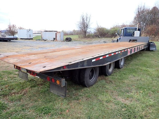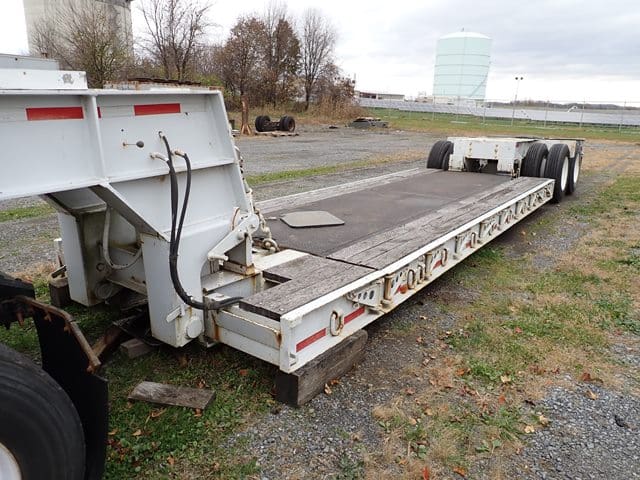ROGERS Model THPG40D76, 40 Ton Tri-Axle Extendable Lowboy Trailer, VIN# 9965THPG40D76FR, equipped with pony motor, ground bearing detachable gooseneck, 19′ – 30′ x 8’deck, flip up 3rd axle, outriggers, chain dogs, and 11R22.5 tires. In fair to good condition with good tires. (Unit #236)