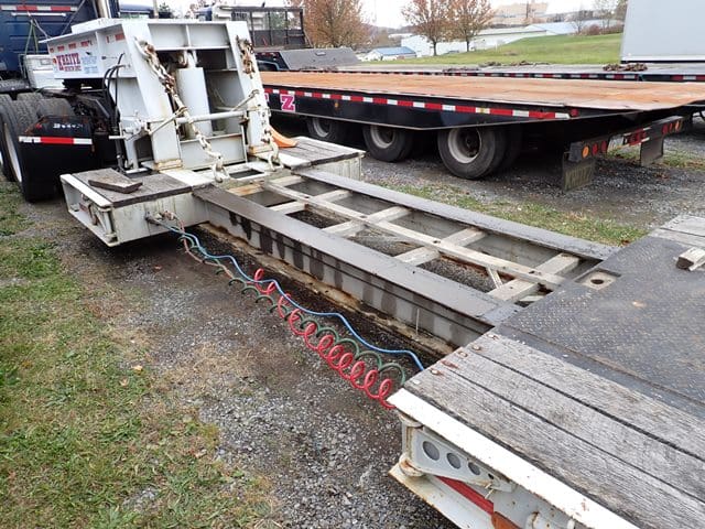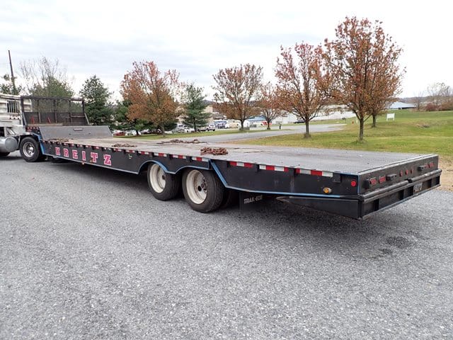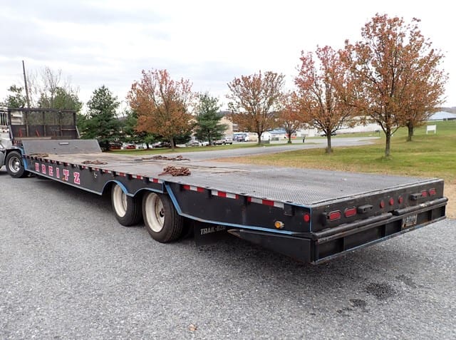 2001 TRAIL-EZE (Dakota Mfg.) Model TE70HT48 Tandem Axle Hydraulic Tail Trailer, VIN# 1DA72C7DX1C015415, equipped with pony motor, 30′ x 102″ main deck, 8′ hydraulic beavertail and flip ramp, 8′ upper deck, 40,000 lb in 10′ concentrated, 84,880 lb GVWR, and 255/70R22.5 tires. In good condition with good tires. (No Winch) (Unit #256)