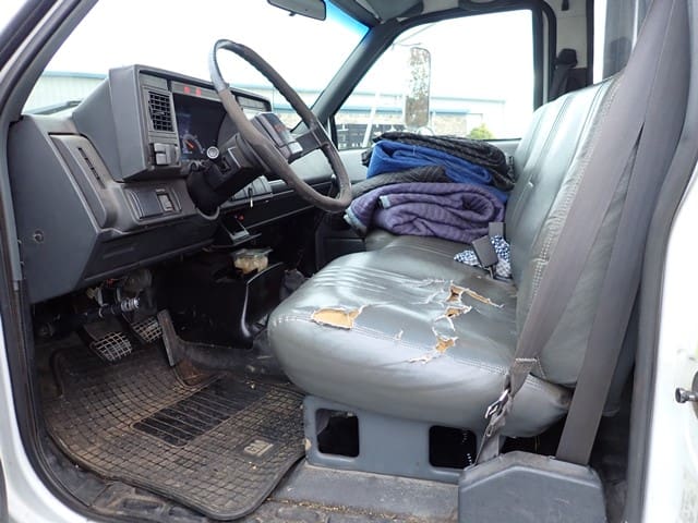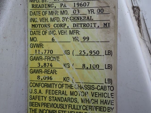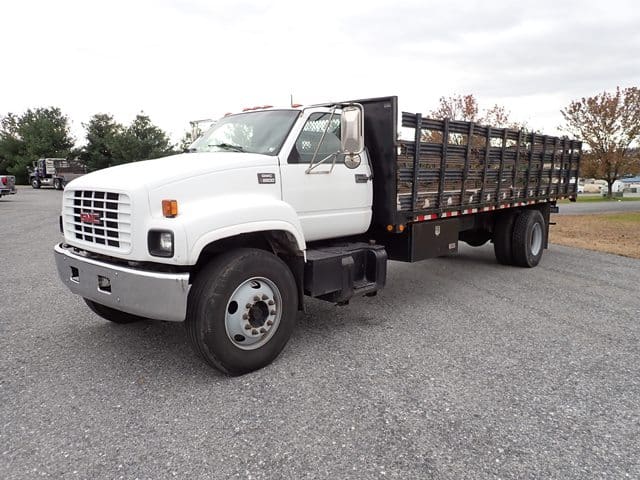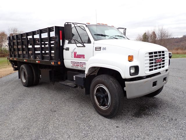 1999 GMC Model C6500 Single Axle Stake Body Truck, VIN# 1GDJ7H1CXXJ517894, powered by Cat 3126, 210HP diesel engine and 6 speed manual transmission, equipped with 24′ stake body, wood floor, 42″ stake sides, hydraulic brakes, 25,950 lb GVWR, air conditioning, and 11R22.5 tires. In good condition with good tires. (Odometer Reads 152,732 Miles) (No Liftgate) (Unit #85)