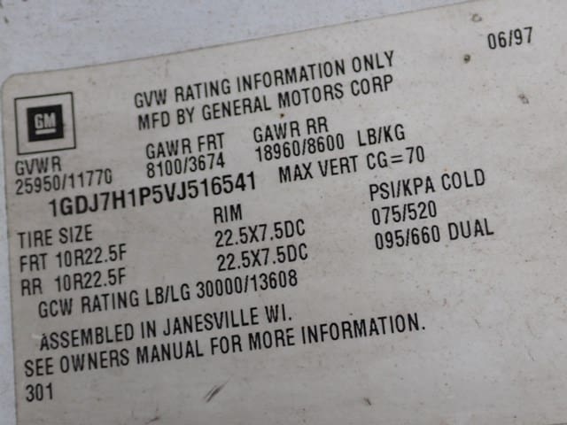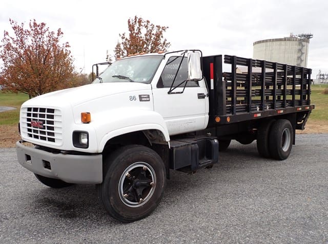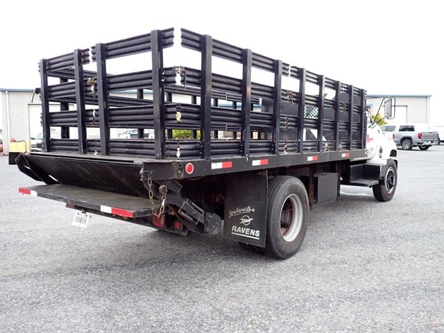 1997 GMC Model C6500 Single Axle Stake Body Truck, VIN# 1GDJ7H1P5VJ516541, powered by 6.0L gas engine and automatic transmission, equipped with 16′ stake body, wood floor, 42″ stake sides, electric liftgate, hydraulic brakes, 25,950 lb GVWR, air conditioning, and 10R22.5 tires. In good condition with good tires. (Odometer Reads 164,083 Miles) (Unit 86)