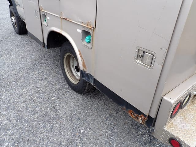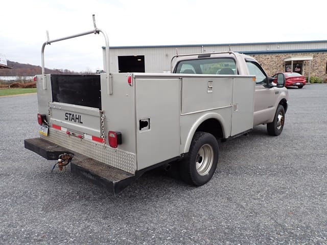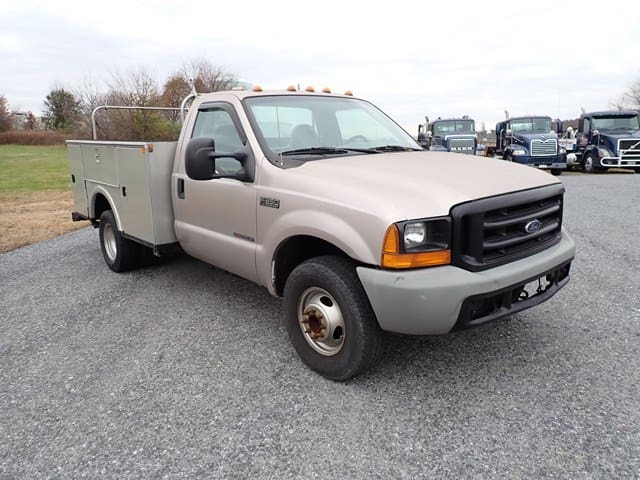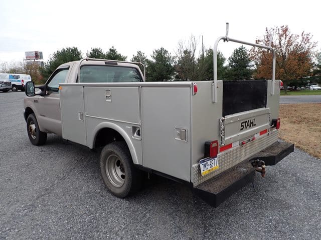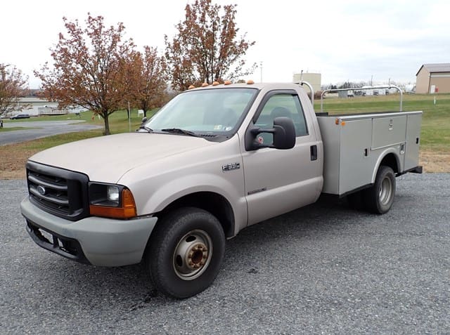 1999 FORD Model F350XL Super Duty Utility Truck, VIN# 1FDWF36F5XEC96664, powered by Powerstroke 7.3L diesel engine and automatic transmission, equipped with Stahl 9′ open utility body, tow package, dual rear wheels, and 235/85R16 tires. In good condition with good tires. (Odometer Reads 181,456 Miles) (No Air Conditioning) (Unit #25)