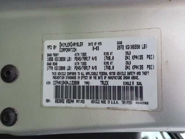 2004 DODGE RAM Model 1500 Pickup Truck, VIN# 1D7HA16N34J123600, powered by Magnum 4.7L, V-8 gas engine and automatic transmission, equipped with 8′ bed, spray liner, cruise control, air conditioning, and 245/70R17 tires. In good condition with good tires. (Odometer Reads 177,837 Miles) (Unit #61)
