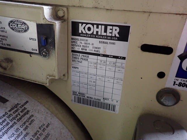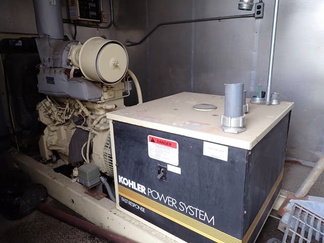 KOHLER 50R0ZJ81, 55KW Diesel Generator, s/n 356985, Kohler diesel engine, 10′ x 8′ insulated and heated contained enclosure with lights and switch gear. (Condition Unknown – Removed From Project as Running Backup); 2005 CUMMINS 215KW Natural Gas Generator, Cummins GTA85502, 336HP natural gas engine, Newage Stamford 3-phase generator. (No Enclosure; Skid Mounted) (Condition Unknown – Removed From Project as Running Backup)