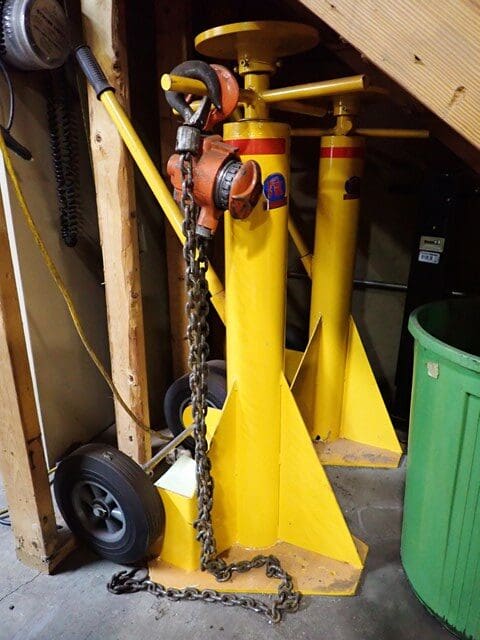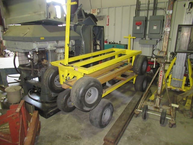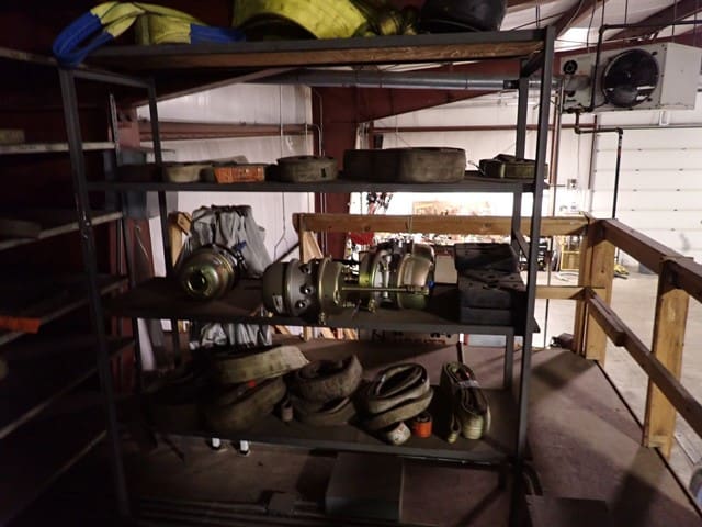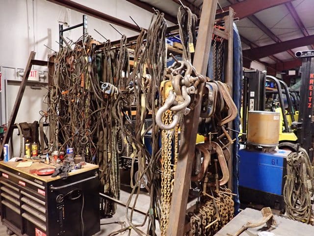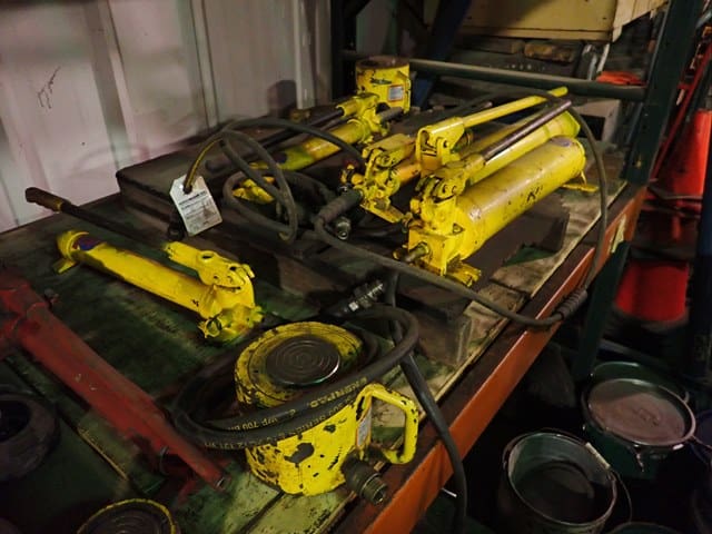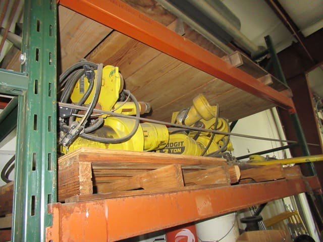 Rigging and Lifting: Aluminum A-Frame Rolling Shop Gantry . Shop Made Steel Rolling Shop Gantry . (5) BUDGIT 3-Ton and 2-TonElectric Hoists, with trolleys . Pneumatic Air Tugger, with wire rope . (2) BRUNSON 771-H JIG Optical Tooling Transits and Rolling Tri-Pods . Manual Hydraulic Pumps and Pancake Jacks . (12) Chain Falls, Beam Trolleys and Beam Clamps . Chains and Clevis Hooks . 23′ Extendable Sprader Beam . (4) 20′ Spreader Beams . 16′ Heavy Duty Spreader Beam . Endless Slings . Nylon Slings . (5) Crates of Heavy Wire Rope Slings . Wire Rope Slings and Chokers . Threaded Lifting Eyes