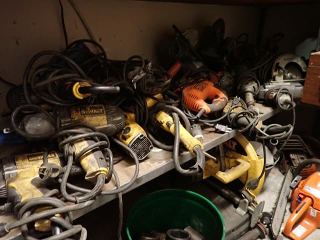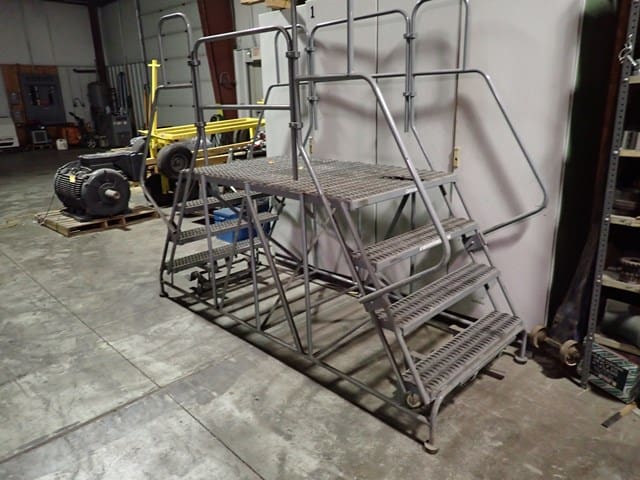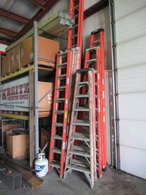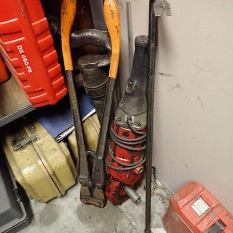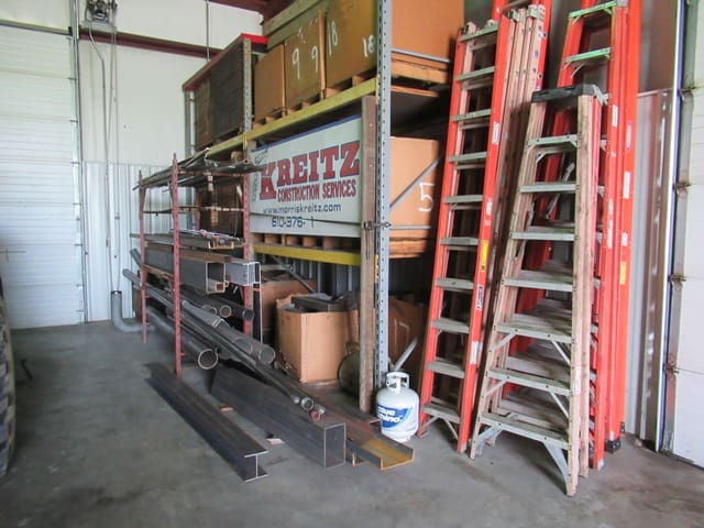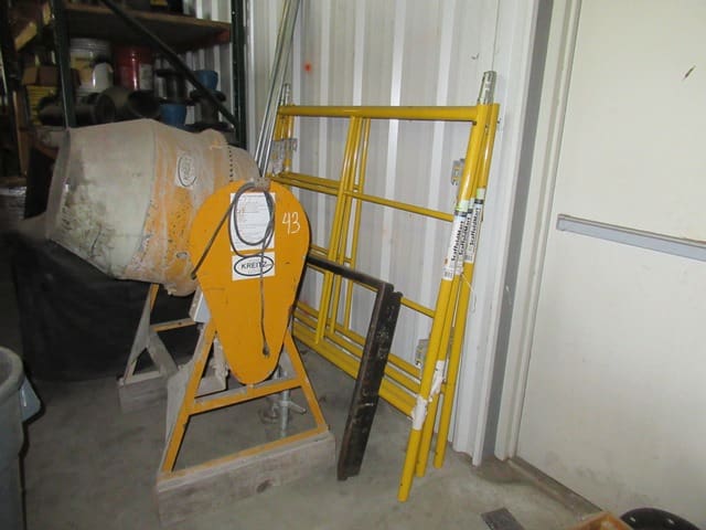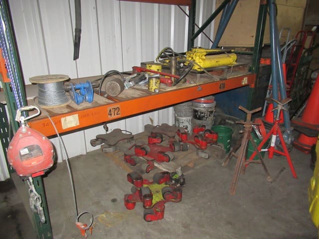 Contractors Tools and Shop Equipment: 8×20 Storage Container . (8) Road Plates 5’x10’x3/4″ . 500-Gal Skid Fuel Tank . Forklift Dump Hopper . RIGID 535 Pipe Threader . Hand-Held Electric Threader Power Drive . Electric Concrete Mixer . Milwaukee Core Drill . (6) KNAACK Piano Box Storage Chests . (1) Wagon Steer Pull Cart – Pneumatic Tires . GENIE Material Lift . Fiberglass Extension and Step Ladders . (3) WERNER 24′ x 16″ Aluminum Pick Boards . Scaffolding and Baker Scaffold . (8) Poly Totes w/Cages . TOLEDO Platform Scale . Rolling Stair Platform . Fireproof Paint Cabinet . Portable Tall Screw Jacks . Floor Jack . Pallet Racking . Steel Stock & Rack . Pallet Jacks . Parts Washer . Hand Tools to Include: Electric Impact Guns . Drills . Saws . Portable Band Saws . HILTI Powder Actuated Fasteners . Magnetic Broach . Grinders . Chain Saws . Sawsalls . Chop Saws . Fall Arrestors and Harnesses . Hammer Drill